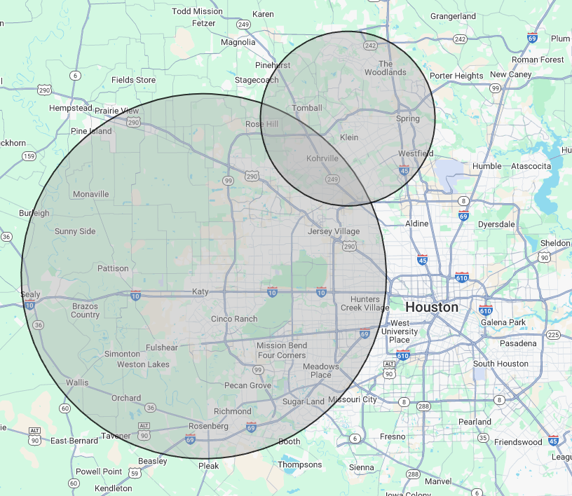 Houston | Katy | Memorial | Richmond | River Oaks | Rosenberg | Stafford | Sugar Land | The Woodlands | Fulshear | Waller | Cinco Ranch | Tomball | Conroe